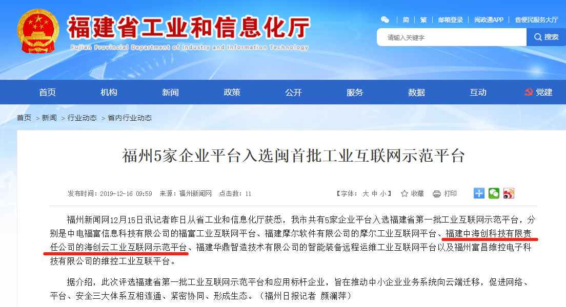 近日,福建省工业和信息化厅公示了福建省首批工业互联网示范平台和应用标杆企业名单。中D体育在线登录入口科技D体育在线登录入口云工业互联网平台在众多参评企业中脱颖而出,成功入选。
